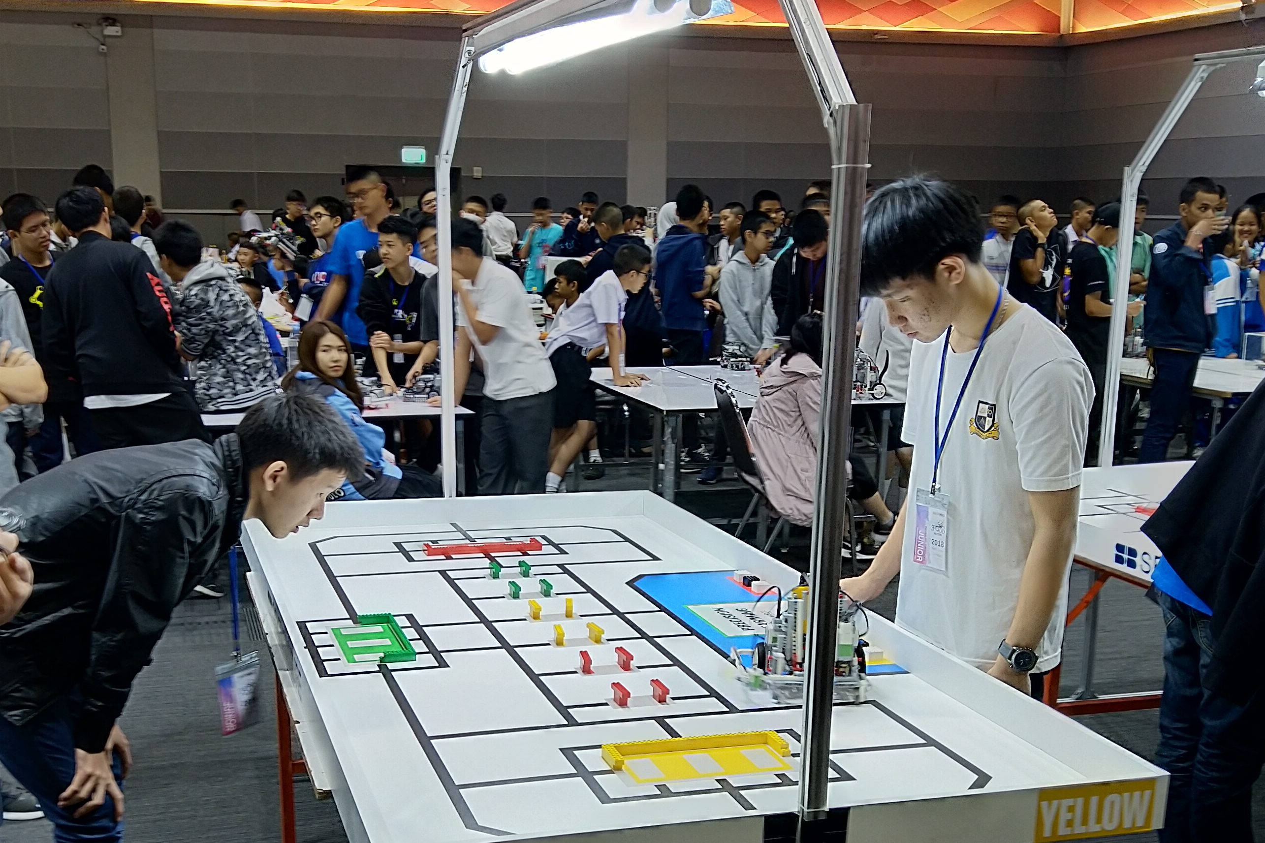 Both teams were in the under 15 age group and competed in the “regular” category of the competition. This category involved first scanning blocks for different colours, which in turn gives information about the colour blocks to collect and where to put them.